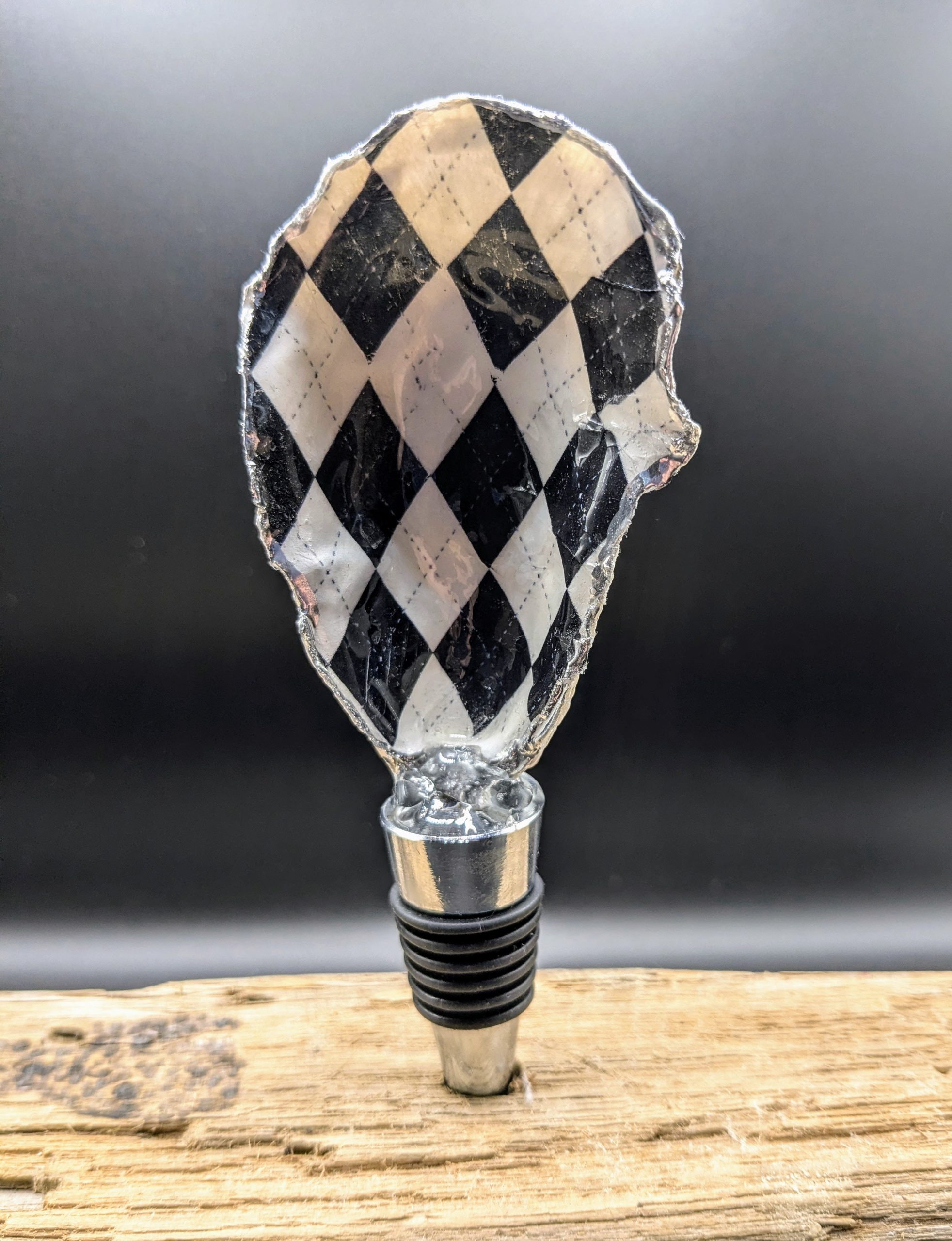 Be the first to review “Black & White Argyle Oyster Shell Wine Bottle Stopper”